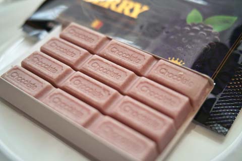 原材料:マルチトール 、カカオバター、全粉乳、ブルーベリー(フリーズドライ)、香料、乳化剤(大豆由来)、デキストリン