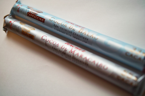 スーパーの輸入菓子売り場で細長いチョコレートを2種類買いました。ハシェチョコレート(HACHEZ)のロング マラカイボとロング ミルクカプチーノです。