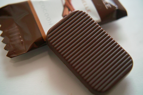 シナモン(CANNELLE COCOON)はカカオ33%のミルクチョコレートです。商品説明によると「イソフラボンを豊富に含む大豆胚芽を使った、女性の体のバランスと健康に配慮したチョコレートです。シナモン・フレーバーのミルクチョコレートで、まろやかなセンセーションをお楽しみください。心地よいハーモニーがかなでるチョコレート体験です。女性の体のバランスと健康に配慮したイソフラボンを豊富に含む大豆胚芽の天然エキスが含まれてい」るそうです。