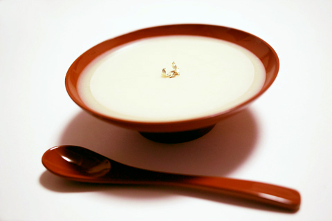 「『オンリー・ワン』をめざすパティシエ・辻口博啓氏が最も日本らしいと感じた吟醸酒の酒粕を使用。器は氏の故郷・石川県<輪島屋善仁>のもの。」「酒粕と生クリームを時間をかけて炊き上げ、ホワイトショコラを合わせ丁寧に仕上げた甘酒ショコラ」です。