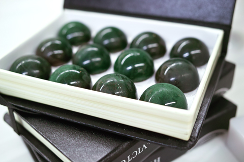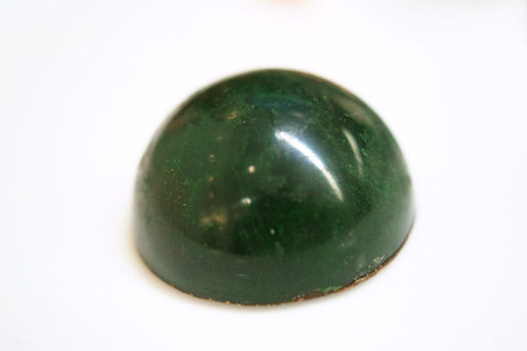 クンババは緑色のドーム型ショコラです。中にクンババで香り付けしたキャラメルガナッシュが入ってビターチョコレートでコーティングしたあります。