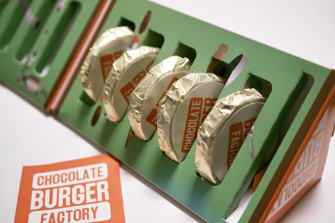 チョコレートバーガーファクトリー(BURGER)は、ハンバーガー屋さんのデリバリーカーをイメージして作られたアメリカン・ポップなパッケージです。