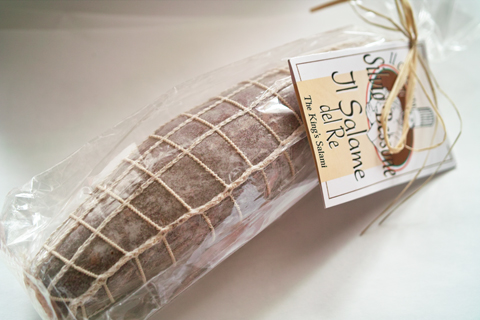 サラメ・デル・レ(Jl Salame del Re)はサラミの形をしたチョコレートです。ネットに入った様子はまさにサラミのようです。