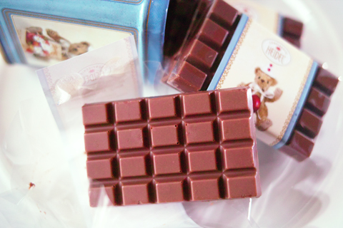中身は55ミリ×35ミリの大きさの小さなミルクチョコレートです。ブロックがとても小さくて、まるでオモチャみたいです。カカオ分37%です。