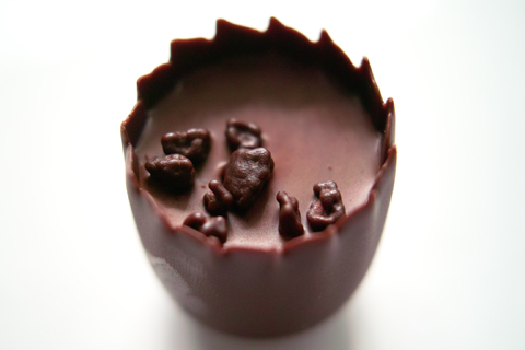 パルフェショコラノアール(Parfait Chocolate Noir)は、「ダークチョコレートカップで包まれたダークチョコレートガナッシュに、85%ダークチョコレートの層を重ねて濃厚に仕上げ、カカオの小さな粒をトッピングし」ていあります。