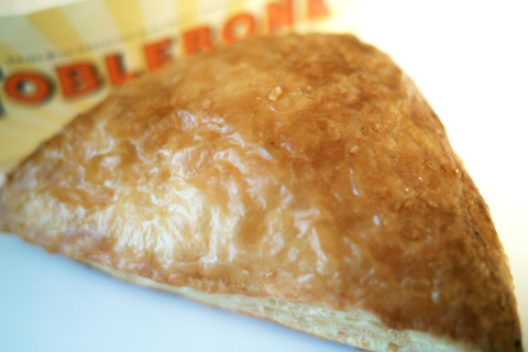 パッケージから取り出すと、名前どおり三角形のデニッシュが現れます。商品説明によると「マッターホルンをかたちどった三角のデニッシュ生地に、スイス産のトブラローネチョコレートを包み焼き上げ」たということです。