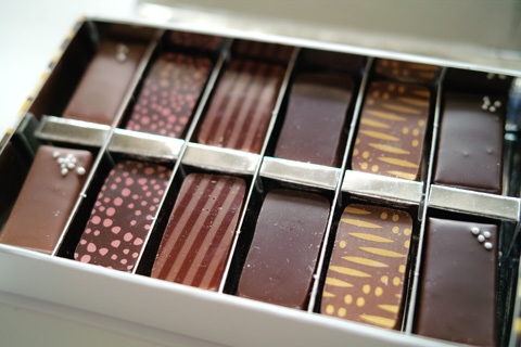商品説明によると「シナモンやラズベリーのガナッシュ、アーモンドプラリネなどさまざまな風味が6種類。チョコの二大主役、ガナッシュとプラリネの食べ比べができるうれしいアソート。素材によってそれぞれ違うルックスもおしゃれ」だそうです。