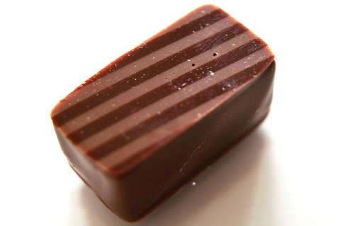 焙煎トンカ豆ガナッシュは縦じまの模様が入ったミルクチョコレートのコーティングです。