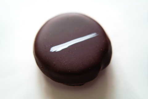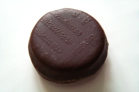 中身はユズの香りが入ったミルクチョコレートのガナッシュです。シトロンの次で柑橘系が並びましたが、ユズの温かみのある香りはまた独特。まろやかなミルクの風味にユズの香りが漂って、こちらはしっかりと甘味が楽しめます。ガナッシュの中にはいったユズのピールが歯ごたえを演出します。