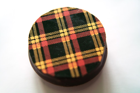 ペーシュフランボワーズは、なんと伊勢丹チェック柄のビターチョコレート。斬新。