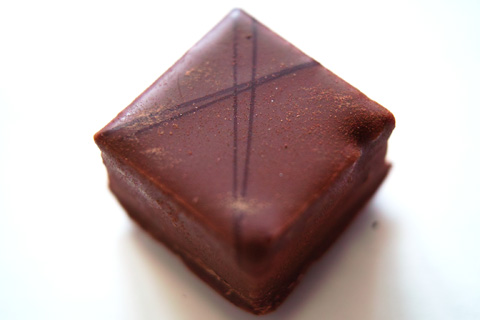 サクサクとした歯ごたえ。プラリネにヘーゼルナッツの欠片が入っています。口溶けが実に滑らか。オイリーな後味がおいしい。ナッツの渋みとまろやかさが、チョコレートの深い苦味を引き立てます。
