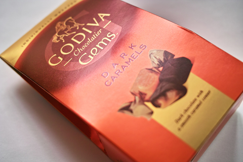 ジェムズ キャラメル ダーク(Gems DARK CARAMELS)はオレンジと金色を基調にしたパッケージです。高級感のある輝き演出されています。