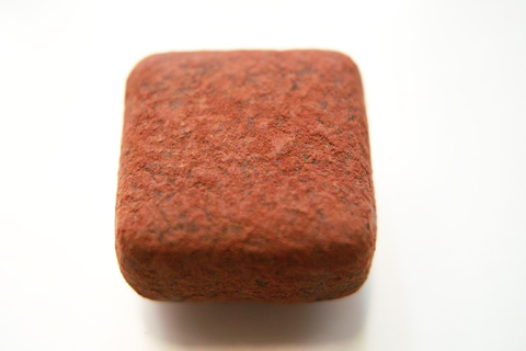 表面の赤いパウダーはダークレッドカカオパウダーだそうです。その名のとおり赤味があります。センターにはラムの香りが詰まったダークチョコレートのガナッシュ。ラムの力強くて熱い香りが立ち上がり、喉の奥をヒリヒリさせます。チョコレートの深い苦味がラムに負けていません。甘さをギリギリまで抑えてあります。お酒が楽しめるチョコレートです。