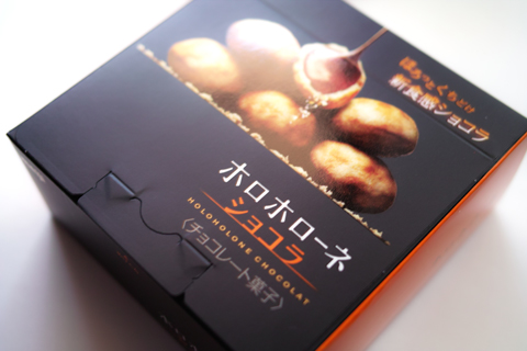 今日のオヤツは明治のホロホローネショコラにしました。パッケージは黒をベースにしたシックなデザイン。オレンジのアクセントカラーが高級感を漂わせています。クッキーの焼き色が実においしそう。