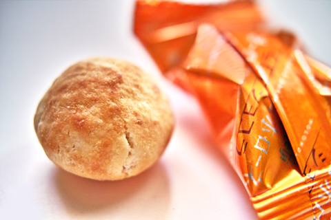 バターの香りがいっぱいのクッキーに苦味のしっかりしたチョコレートの組み合わせ。まさに鉄板の相性です。鼻に抜けるバターの香りもまろやかでおいしい。後味にあまく残るチョコレートの風味もおいしい。しかし、ホロッと崩れる焼き菓子というのを事前に強くイメージしてしまったせいか、思ったよりも口当たりがやさしくありません。シュガーボールみたいな食感かと思ってしまったのが、敗因でしょうか。
