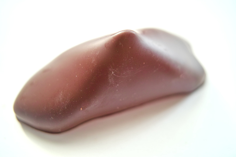 こちらもうれしいボリューム。その辺のボンボンショコラの倍あります。ガリっと歯に当たる固さ。コーティングに歯応えがあるのは周りがトフィーだから。それを苦味と酸味のあるビターチョコレートでコーティングしています。センターは白いバニラクリーム。ヨーグルトのような、甘くフローラルでありながら清涼感が漂います。トフィーの甘さと噛み応えがおいしい。