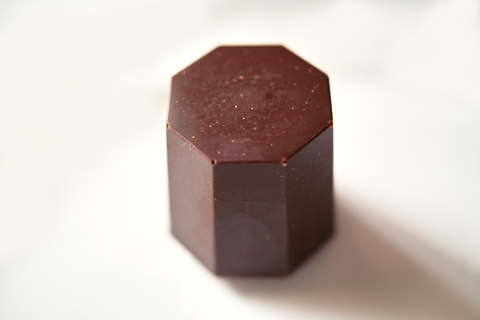 シュガーパウダーがやさしい甘み。センターのキャラメル風味のガナッシュは滑らかでとてもまろやか。すっきりとした上質な苦味とバニラの清涼感が良く合って優雅な雰囲気のボンボンショコラに仕上がっています。余韻もとても長く楽しめます。