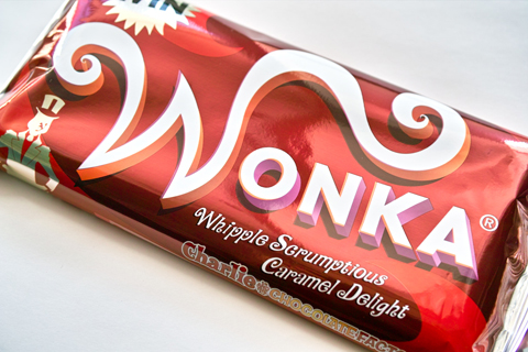 赤いパッケージは、ウォンカチョコレートのホイップル・スクランプシャス・キャラメル・ディライト(Whipple Scrumptious Caramel Delight)です。