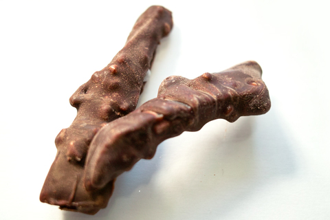 パンプルムジェットはルビーグレープフルーツのピールを使ったチョコレートです。商品説明によると「グレープフルーツは一日半かけ、コンフィに仕上げています。グレープフルーツの香りを、香ばしいアーモンドの入ったビターショコラが引き立て」るそうです。