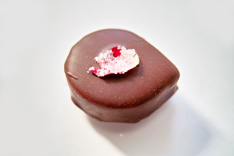 口に含んだ途端に舌に酸味を感じ、すぐに甘酸っぱい様々なベリーの香りが続きます。甘酸っぱくてロマンチック。チョコレートが体温に馴染むと心温まるカカオとミルクの香りが鼻に抜けます。チョコレートは上品で癖のない良質なものです。余韻がすばらしく、長く味わいを楽しめます。