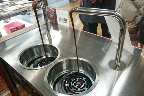 カカオ研究所のチョコレートが延々と流れる蛇口。あぁ、ずっと眺めていたい。