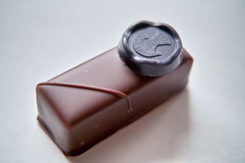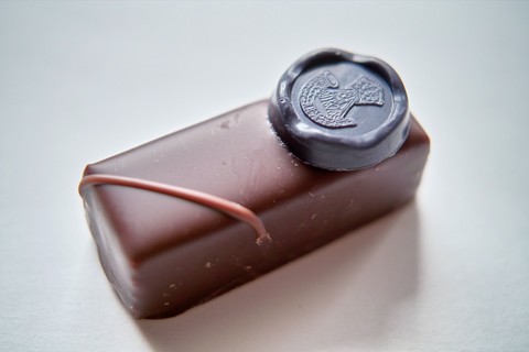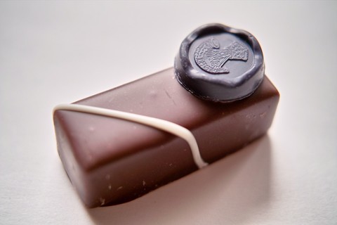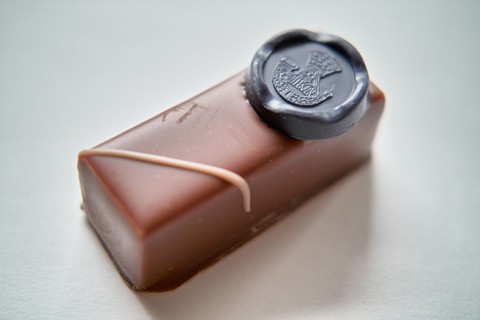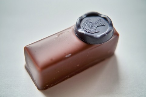 甘い香りでローストは深め。チョコレートの上品な甘さとすっきりとした苦味に支えられてアルマニャックの可憐な芳香が広がります。口溶けはなめらか。前の二つと比べると、アルコール分も控えめでやさしい口当りです。最後に封蝋部分が口に残りホワイトチョコレートに由来するミルクの香りが余韻となって広がります。アルマニャックとホワイトチョコレートとの相性もよく思います。