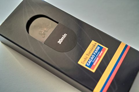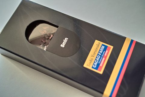 パッケージは、黒をベースにエクアドルの国旗の三色をアクセントに使ったデザインです。光をかざしてよく見ると真ん中にうっすらとカカオポッドが浮かび上がります。