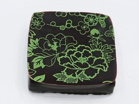 ユズ・マント(Yuzu Menthe)です。商品説明によると「ユズを使用したガナッシュに、ミントをプラス。ミントの新鮮な風味と爽やかさを追求したボンボン・ショコラ。天面には、牡丹、梅、鉄線などさまざまな季節の草花をあしら」ったそうです。