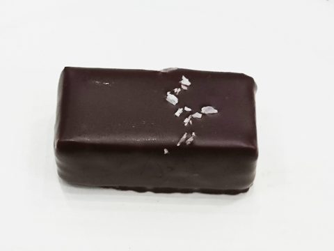 ココナッツの清涼感とプラリネの旨みがバランスよく香り、サクサクとした歯応えが楽しめます。ビターチョコレートの上質な苦味が味を整え、トッピングの塩が味にアクセントを加えます。様々な味が次々と溶け合い変化し、さらに質感の違いまでも楽しめる特別な一粒です。