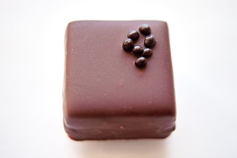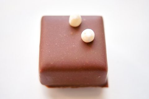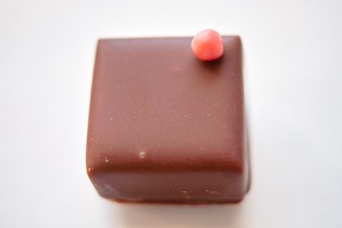 ピンク色のトッピングが珊瑚のようで愛らしい。センターはパッションフルーツの優しい酸味が詰まったミルクチョコレートのガナッシュ。滑らかな口溶けと、どこまでも続く甘い香りがたまりません。こんなスイートな見た目でパッションフルーツ風味というギャップにやられます。