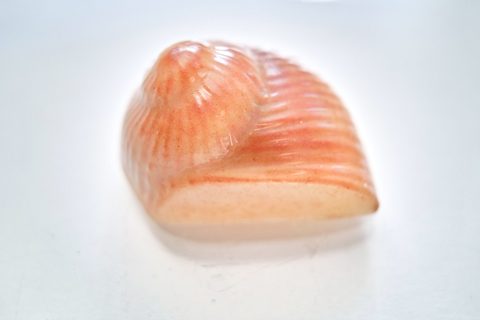 エスカルゴ(Escargot)は巻貝の形をしたボンボンショコラ。商品説明によると「ホワイトチョコレートの中にキャラメルソース」が入っているそうです。