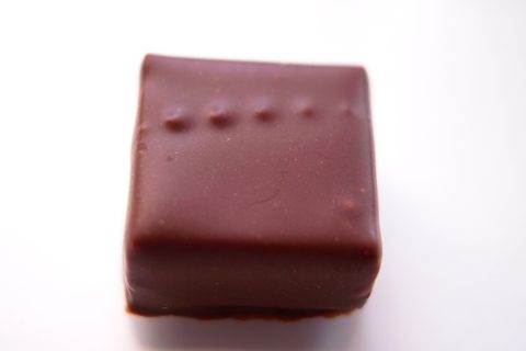 甘酸っぱいフランボワーズと苦味のしっかりしたビターチョコレートの組み合わせ。酸味は控え目です。コーティングに厚みがあり、口当たりが固く感じました。