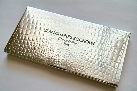 タブレット ビー・ポーレン(Noir, 62% Pollen)は、ジャン=シャルル・ロシューのファンにはお馴染みの、クロコダイルの皮を模した銀色の紙箱です。