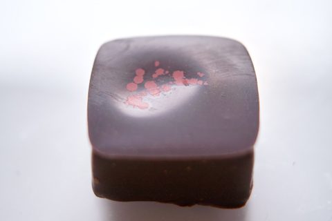 コーティングはビターチョコレート、センターはフランボワーズの香りが詰まったガナッシュです。上質なチョコレートの香りの後から、赤い果実の酸味が口いっぱいに広がります。チョコレートとフランボワーズの甘酸っぱさとの調和が素晴らしい。