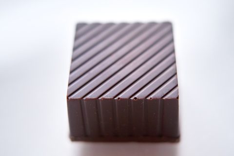 コーティングはミルクチョコレートで、センターはアプリコットの香りが詰まったガナッシュです。アプリコットの爽やかな風味がおいしい。トッピングの黄色い砂糖菓子がガリガリとした食感を添えています。