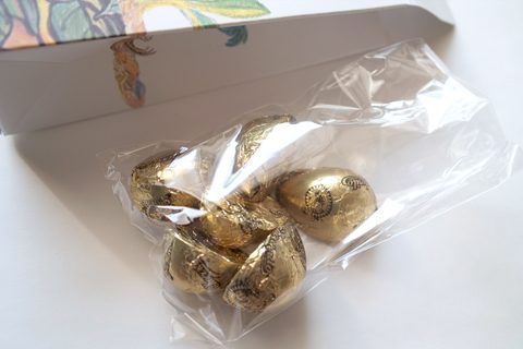 金色の銀紙の中に、雫型のビターチョコレートが入っています。