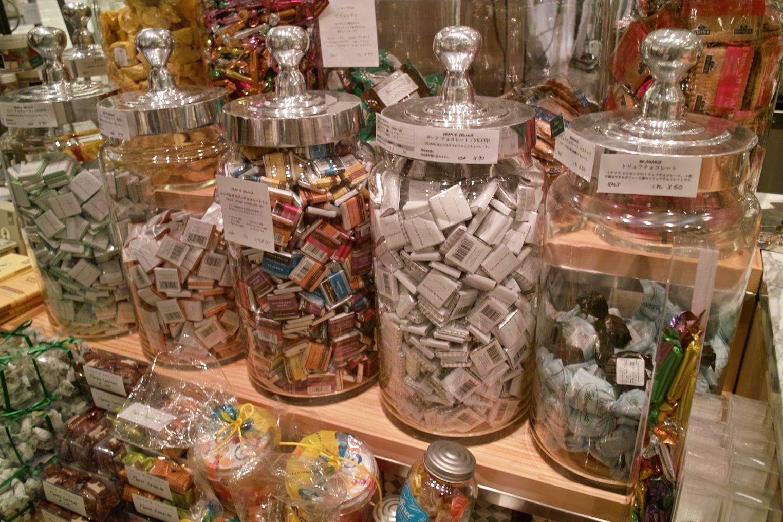 ガラス瓶にディスプレイされたチョコレートの輝きに心が揺れます。