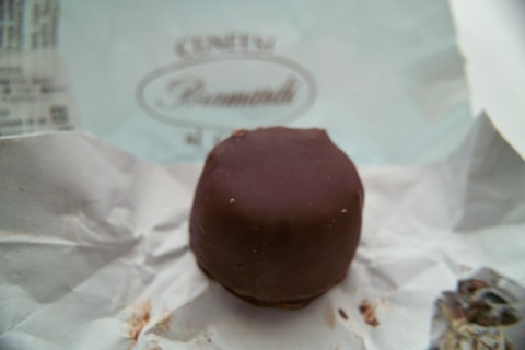 ヘーゼルナッツとアーモンドのジャンドゥーヤをセンターにしてバニラとミルクの香りがやけに強いチョコレートでコーティングしてあります。ジャンドゥーヤにはアーモンドの欠片も少し入っていて、砂糖が強くて喉に染みます。口の中で溶け切った後、舌にややざらきが残ります。