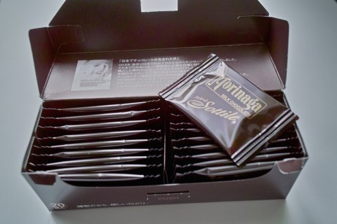 原材料:砂糖、カカオマス、ココアバター、全粉乳、乳化剤(大豆由来)、香料