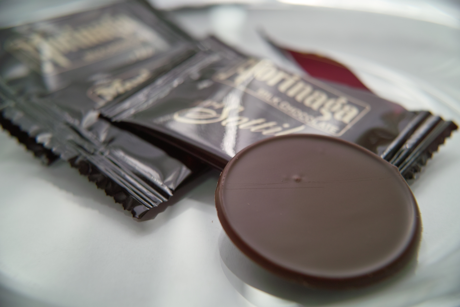 何のロゴも、模様もないからこその均質な味が楽しめます。唇で挟むと、そのままの形に溶けて口中に広がります。薄いから溶け方が早く、すばやく幸せを感受できるのが良いですね。