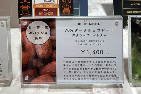 金沢駅構内のチョコレートショップで70% ダークチョコレート ダクラック ベトナム(70% DARK CHOCOLATE DAK LAK, VIETNAM -BLUE MOON-)を買いました。