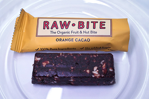 中身はフルーツバーです。手で持つと表面が少しベタベタしています。デーツの甘みが自然で、塩分控えめな割に、オレンジとカカオの良質な苦みが食べ飽きないおいしさをもたらしています。大きめのナッツの噛み応えが思いの外心地よい。短時間での栄養補給が必要な場合に重宝しそうです。