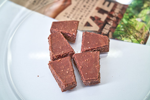 古代製法チョコレートと書かれていました。スペインやイタリア産のチョコレートでたまに見かける、石臼でゴリゴリ挽いて作る加熱しない製法のものです。