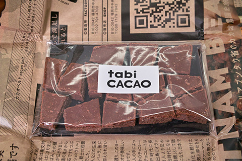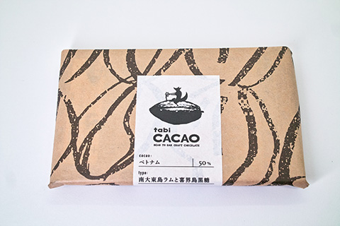 タビカカオ(tabi CACAO)は、福岡県福岡市内を中心に店舗を広げ、九州のローカル食材を扱うカフェ・グロッサリーストアのアンドローカルズ(&LOCALS)のチョコレートブランドで、ビーン・トゥ・バーチョコレートを製造・販売しています。ブランドロゴは、狐がカカオポッド型の乗り物を運転している姿がシルエットで描かれていて、親しみがあります。カカオが、中央アメリカで食用にされてから日本に伝わるまで5000年の長い歴史を旅してきたことに敬意を表して、旅カカオと名付けられました。