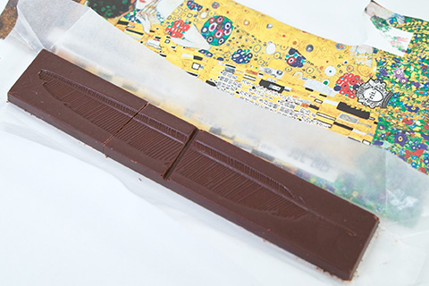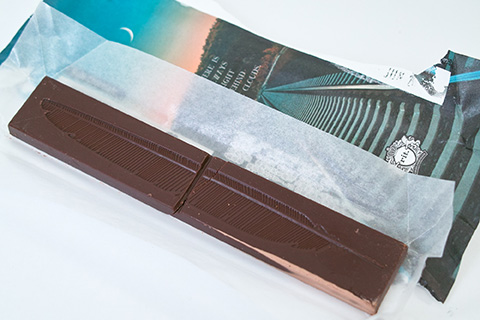 鳥の羽が象られた細身のタブレットで、名前通りテイスティングに向いたサイズです。口の体温でサラリと溶けて、タンザニア産カカオらしいベリー系の鋭い酸味と力強いカカオ香が広がります。きび砂糖だけのミニマムな味が潔い。