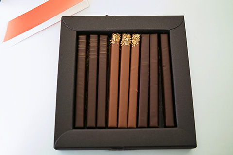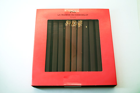 商品説明によると「サクサクした食感のダークプラリネや 、ココナッツ入りのミルクプラリネ、クラシックなキャラメリゼしたビスキュイ入りのプラリネなど、バトン状の3種類のプラリネをお楽しみいただけるギフトボックス」とのこと。