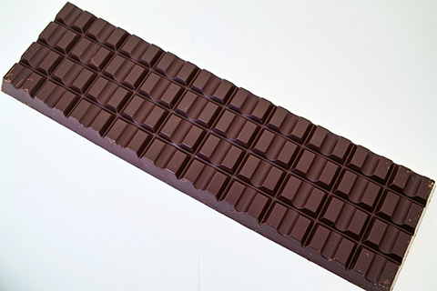 モールドは20✕4のブロックです。商品説明によると「数種のカカオ豆をブレンドすることで、クセのないまろやかな味に仕上げました。カカオ豆の焙煎香とビターチョコレートならではのほろ苦さがマッチしています」とのこと。