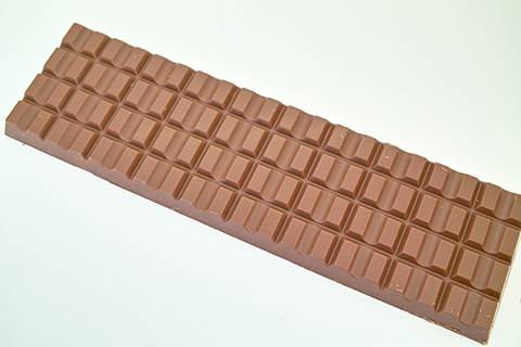 モールドは20✕4のブロックです。商品説明によると「ヨーロッパ産のミルクパウダーを贅沢に使用し、丁寧に練りあげて、ミルク本来の風味となめらかな口どけのミルクチョコレートに仕上げました」とのこと。