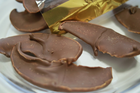 生ショコラはお寿司一貫サイズ。形と厚みは時代劇の越後屋が悪徳代官に差し出す小判の束にも似ています。簡易包装がおみやげ物和菓子みたいで、そっけない。