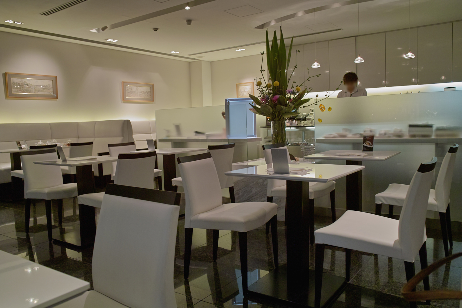 カフェスペースは白磁を思わせるシンとした空気があります。